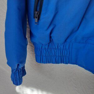 It has zippered pockets and a wide elastic band at the hem and wrists. This jacket is super thick. Excellent condition.