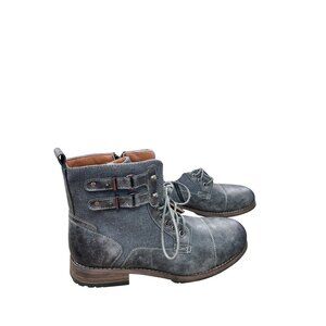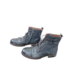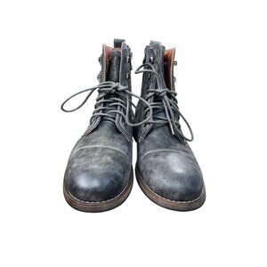 These men's Polar Fox ankle boots exhibit a rugged and sophisticated look with a distressed gray finish. The lace-up design, accented with a double buckle and side zipper, ensures both style and functionality. Crafted for durability, these boots are an ideal choice for versatile wear. They are in new like condition with no defects noted. I ship really fast. SKU 8824