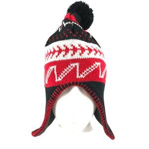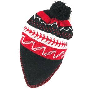 Polar Wear Kids Beanie Hat Ear Flaps Fleece Lined Striped Knit Pom Red Black OS