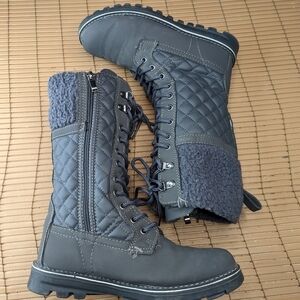Polar Womens Lace Up Faux Fur lined and trim Mid Calf Waterproof Grey Winter Boots Size 7M.
