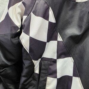 Style: Snowmobile/powersports racing jacket with checkered flag graphics
