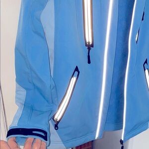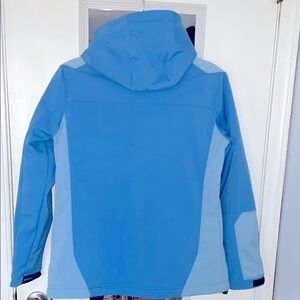 Polaris Razor brand, blue hooded Jacket, quality made for your next sports event. Jacket is fitted and made from water repellent material (almost feels like neoprene)