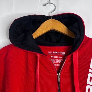 Polaris Racing Red Hooded 100% Cotton Full Zip Thermal Sweatshirt Size Medium