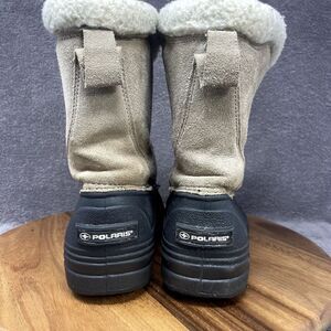 Polaris Thinsulate Leather Winter Snow Boots Zip Up Tan Black Women's US Size 8