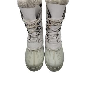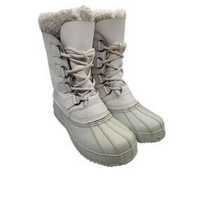 Polaris Winter Snow Boots Women’s 8 White Mid Calf Faux Fur Lace Up Steel Shank