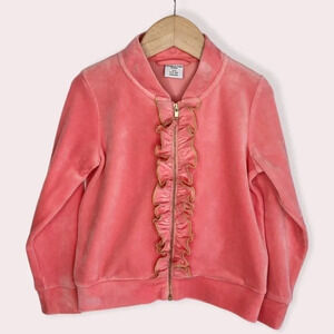 Polarn O. Pyret jacket peach velour with gold trim ruffles size 3-4 years