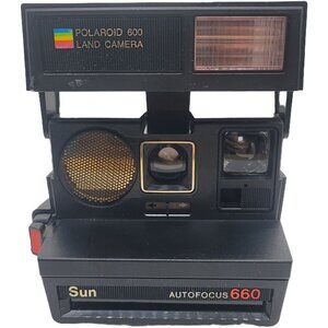 Capture nostalgia in a flash with the Polaroid 600 Land Camera SunLP Autofocus 660, a vintage classic that delivers instant photos with retro flair. This iconic camera features Sonar Autofocus technology, helping you get sharp shots every time—just point, shoot, and watch your memories develop in seconds. Designed in the 1980s, it's compatible with Polaroid 600 film (sold separately), perfect for collectors, artists, or anyone wanting to relive the joy of instant photography.