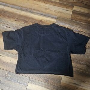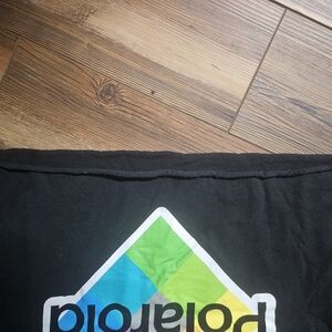 Vibrant Polaroid logo on a black tee. Fun and colorful design. Cut off tee shirt for a trendy crop look