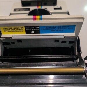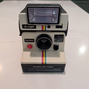 The product is a vintage Polaroid One Step camera with a Q-Light flash. This instant camera allows users to take pictures and capture memories in a nostalgic and iconic way. The brand, Polaroid, is well-known for its unique and popular cameras, and the model, One Step, is a classic choice for photography enthusiasts. While the camera is described as untested, it holds the potential to create timeless and special images for users looking to explore the vintage photography genre.
