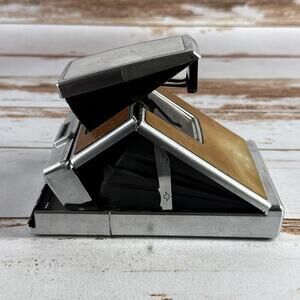 Classic folding instant camera from Polaroid’s SX-70 series, known for its iconic design and manual focus capability. This unit is untested and offered strictly for parts, repair, or display. Ideal for restoration enthusiasts or collectors of vintage analog gear. Leather panels show consistent wear; mechanical and optical functions not verified.