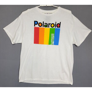 Polaroid Shirt Men's XL White Rainbow Stripe Graphic Delta Pro Weight Tee