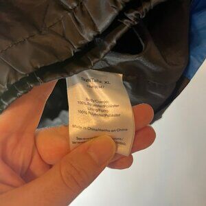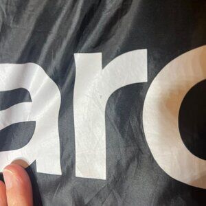 Good condition. There is small snag on bottom of front and tiny dot that is barely noticeable on white letter as seen in last two pictures.