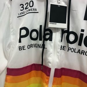 Polaroid Woman's Hooded Windbreaker Jacket Rainbow White SZ L NWT. Condition is New with tags.
