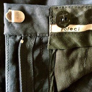 Poleci dress pants are made with black mid-weight, silky smooth fabric with slight sheen.
