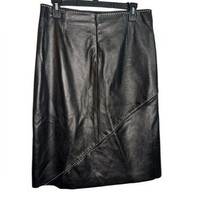 Poleci Soft Black Leather Pencil Stitch Knee Length Skirt Size 8