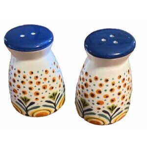 Polemedia Spring Flowers Polish Pottery Salt Pepper Multicolor Floral Ceramic