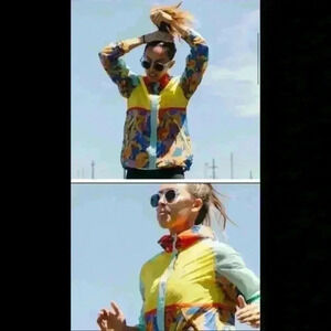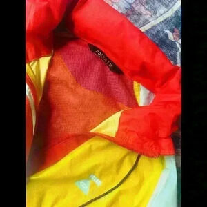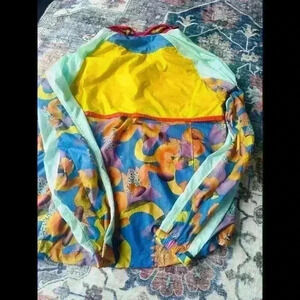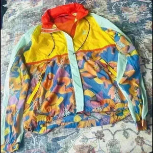 This Poler Breezy jacket is a colorful addition to any wardrobe. The unisex design and size medium make it perfect for a variety of activities, from outdoor workouts to casual outings. The windbreaker style and multicolor pattern add a touch of nature, art, and retro style to any outfit.