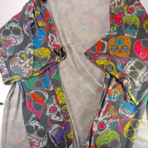Candy Skull - Day of the Dead Front Tie Cardigan. Cute and Flattering with Bold Colors. XL. Excellent condition.See pics for measurements.