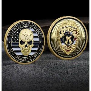 This challenge coin is a great way to show your support for law enforcement. It features a skull with a Thin Blue Line flag on one side and a badge with the words "To Protect and Serve" on the other. It's a high-quality coin that would make a great gift for a police officer or anyone who supports the police.