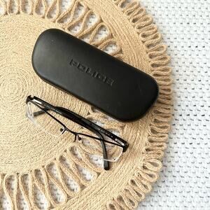 Vintage. Y2K styling. From Police. Made in Italy. Style number V2906. Black metal frame with half exposed lenses frames rectangular eyeglasses. Comes with original case. Original lenses does have a prescription but can be replaced. Preowned in good condition with no chips stains or tears.