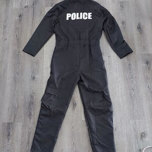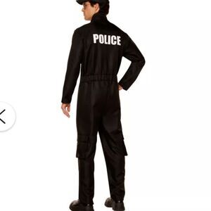 You'll be prepared to lay down the law in this Adult Police Jumpsuit Costume. This costume features a black jumpsuit with a "Police" printed on the back