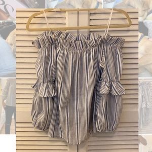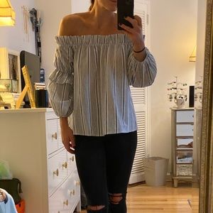 Police & Sebastian Off the Shoulder Blue & White Striped Gauzy Top