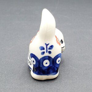 Polish Pottery Blue Eye Spring Cat Figurine Small Blue Red Floral Cat Statue