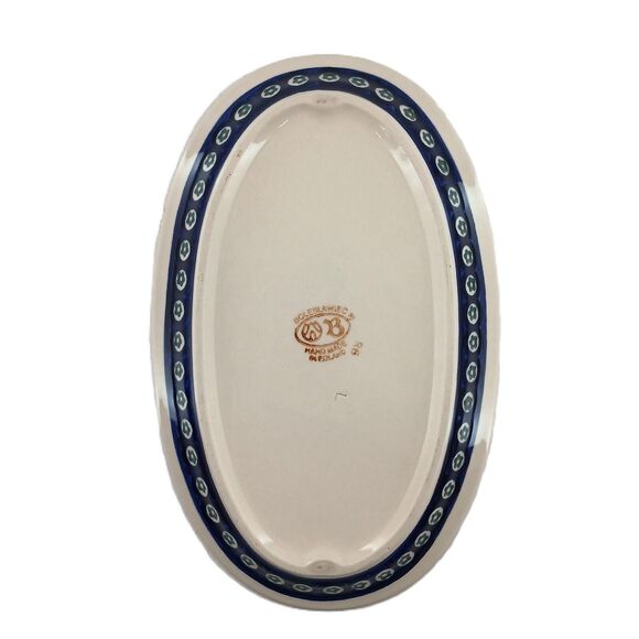 Polish Pottery Blue Floral Oval Platter by Zaklady Boleslawiec