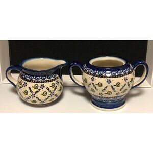 Polish Pottery Boleslawiec Stoneware Confetti, Festive Garden, Sugar & Creamer