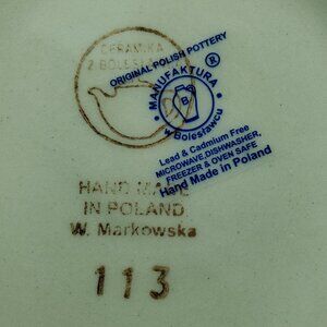 Polish Pottery Garden Bouquet Mug. Manufaktura mug with reddish and yellow gold flowers and blue swirls. Excellent pre-owned condition. 3.75" tall and 3-7/8" across the top.
