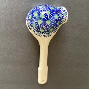 This Polish Pottery Unikat (Signature )ladle was made by talented artisans from Poland. It was hand painted with both sponges and brushes in the Mariposa Lily pattern