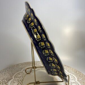 Polish Pottery Large Platter BOLESLAWCU Boleslawiec Poland 13in Ruffled Blue