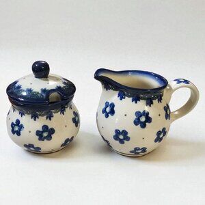 Polish Pottery Small Sugar and Creamer in Hard to Find Falling Daisies Pattern