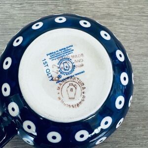 NWT new unused Boleslawiec traditional style Polish pottery floral design ceramic coffee mug cup. Navy blue and red colors, circle edge design with flowers. See photos for size. May have multiples available, please ask if interested in bundling to save on shipping.