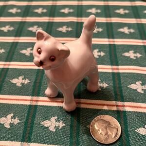 Polish White Standing Cat Figurine with Tall Tail 3” Height