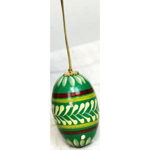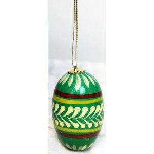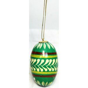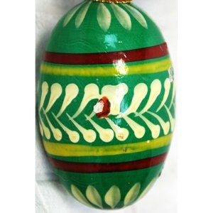 Polish Wooden Egg Ornament Painted Green Red Yellow Designs Christmas Holiday