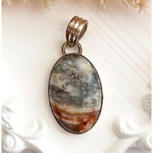 Polished Agate Gemstone Oval Sterling Silver Minimalist 925 Vintage Pendant