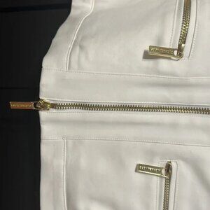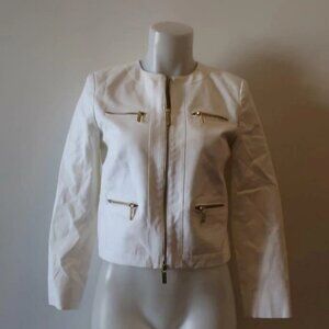 Polished & Bold! MICHAEL Michael Kors White Moto Jacket with Gold Zippers