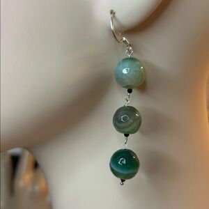 Unique and meaningful addition to your jewelry collection, these green agate three stone dangle earrings are designed in sterling silver. Inspired by the symbolism of three stone jewelry, these beads earrings make a thoughtful gift for any occasion.