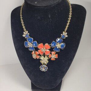 Polished Gold Colorful Flower Sparkle Crystal Necklace Statement Floral Jewelry