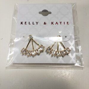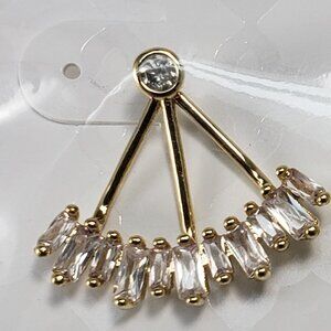 A Simple Beautiful Design of a pair of Gold Plated ear Jacket Earrings with Shiny Rhinestone Crystals. ( 2 in 1 )You can wear the studs on their own or with the cluster bottom attached. New with tag