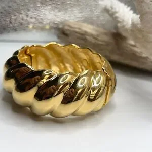 Polished Gold Twist Bangle Hinged Bracelet Kenneth Jay Lane