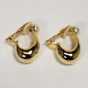 Classic meets comfort with these polished gold-tone hoops clip-on earrings – a must-have for elevating any outfit without the need for pierced ears. These sleek and stylish hoops offer a timeless silhouette with a glossy gold finish that pairs effortlessly with everything from casual looks to evening wear. NWOT
