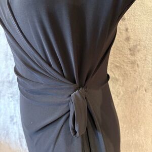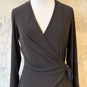 Polished Minimalist Black Wrap Long Sleeve Tie Waist Midi Dress Sz 4