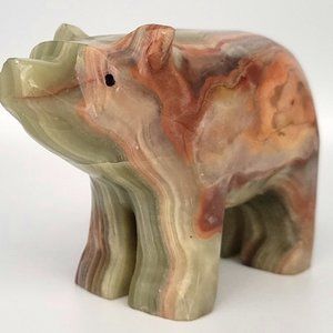 Polished Onyx Marble Bear - Unique Natural Stone Decor