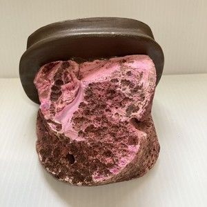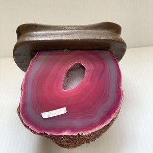 Natural Pink Agate Geode mounted on a Thick Solid Brown Wood Base