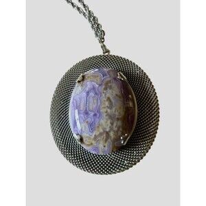 Lovely purple agate polished oval stone in a silver colored metal setting. 24 chain. Great vintage condition.