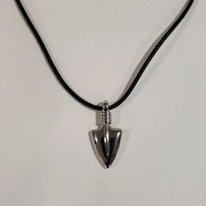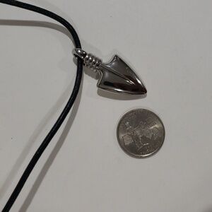 Make a bold statement with this silver-tone arrowhead pendant necklace, featuring a sleek black rope chain for a modern, edgy look. Perfect for everyday wear or layering with other pieces, this necklace adds a touch of boho-chic and warrior-inspired fashion to any outfit.