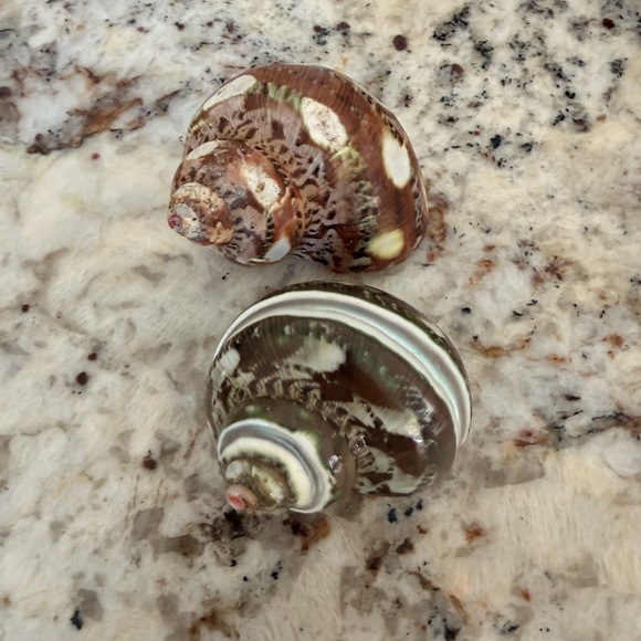 Beautiful brown and green turbo shells with 1-1.5” openings. Perfect for medium sized hermit crabs or home decor.
