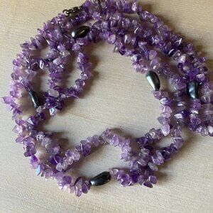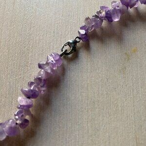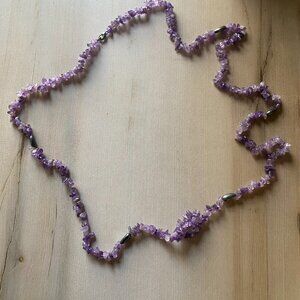 Polished amethyst chip with 925 sterling silver beads necklace 40" boho earthy